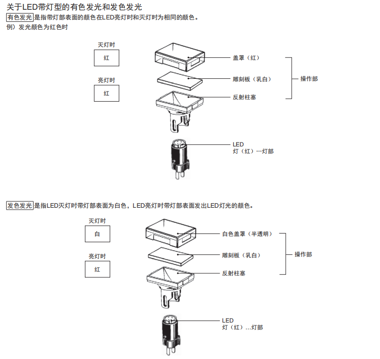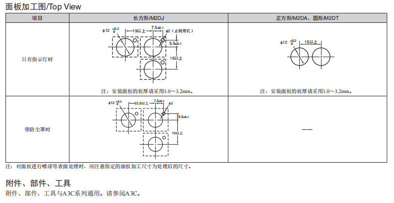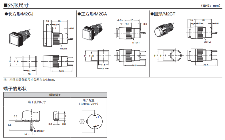 長20mm、 圓型f12系列 ●與按鈕開關A3C系列是同一類型。 ●高亮度的均一表面發(fā)光。 ●圓形便于開孔。